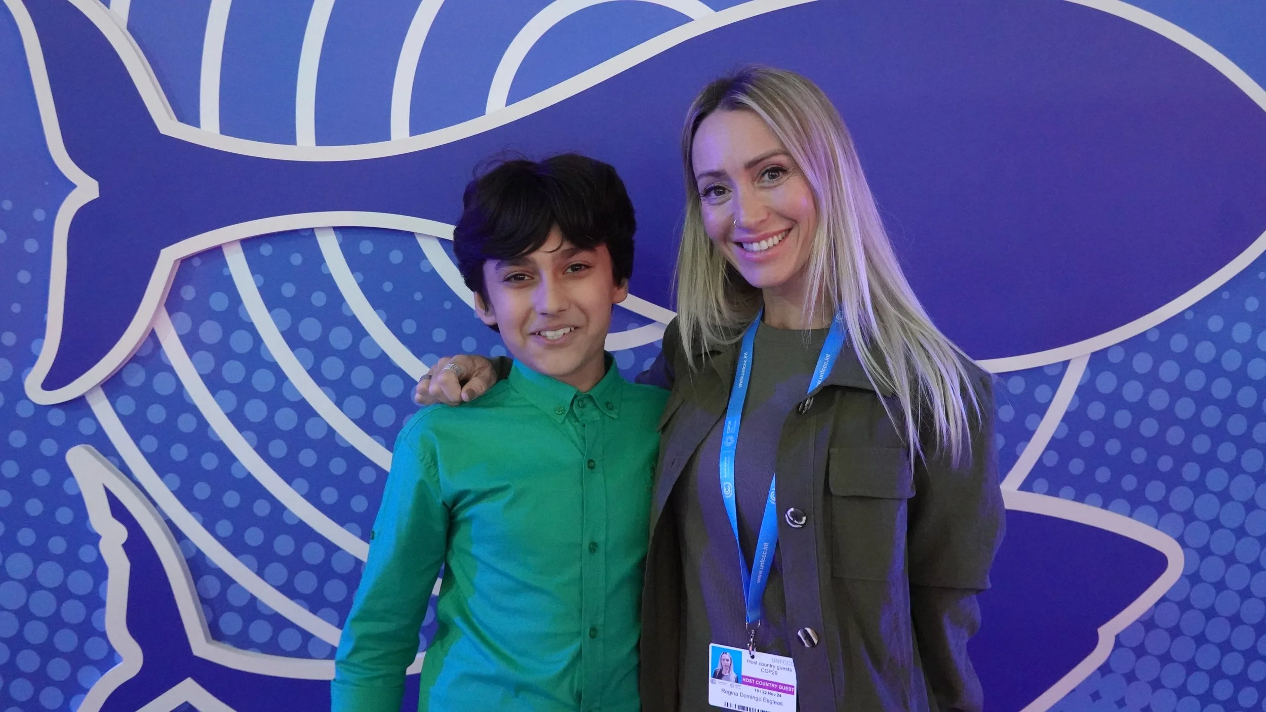 Rob Stewart's parents, Sandy and Brian Stewart sending a message to COP29 and FINS initiative pavilion attendees.
